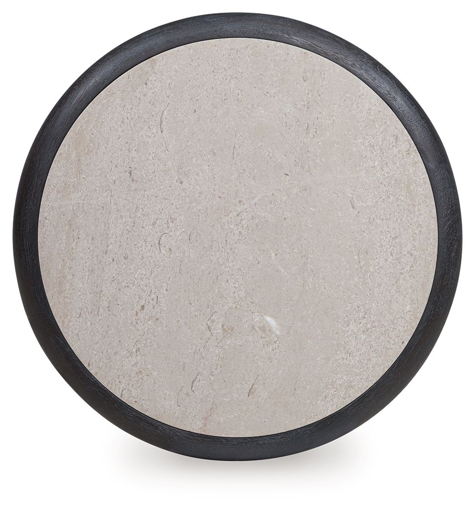 Rustic style. Refined design. This end table expertly marries a clean-lined silhouette with natural materials. Crafted with an elegant marble inlay top, it’s loaded with both homespun charm and contemporary flair. And with its versatile French black finish, this table effortlessly elevates casual aesthetics.