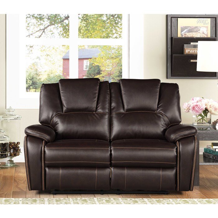 DARK BROWN Breathable Air Leather Recliner Loveseat