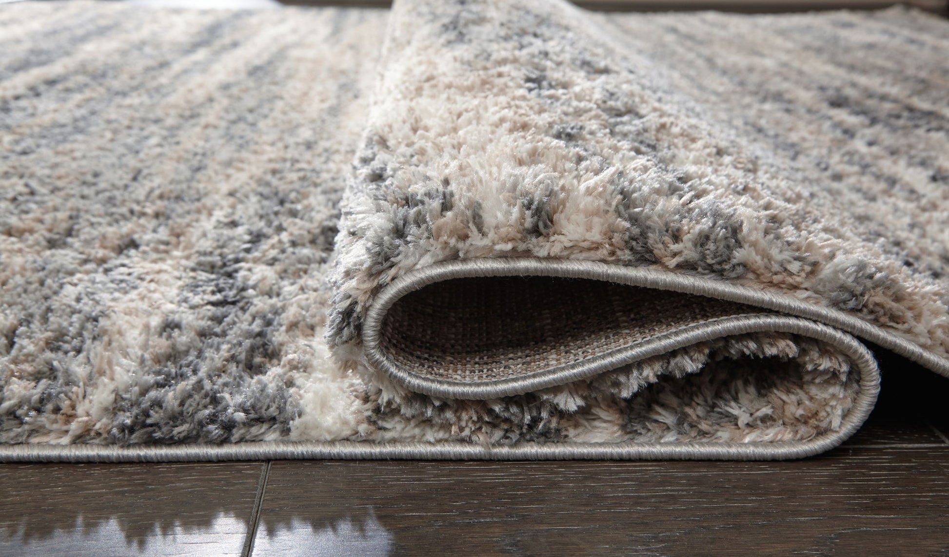 Indulge in retro revival with this sumptuous shag rug. Its plush pile is loaded with feel-good texture. With a striped design, the rug's harmonious hues make it a tasteful choice for so many spaces.